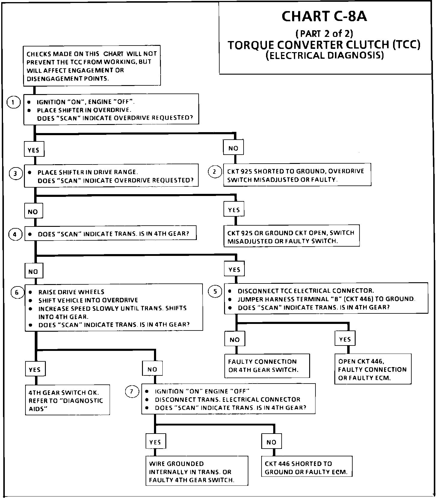 1. With the gear switch in overdrive, the "Scan" should display "YES". In this position, TCC will engage at about 30 mph.