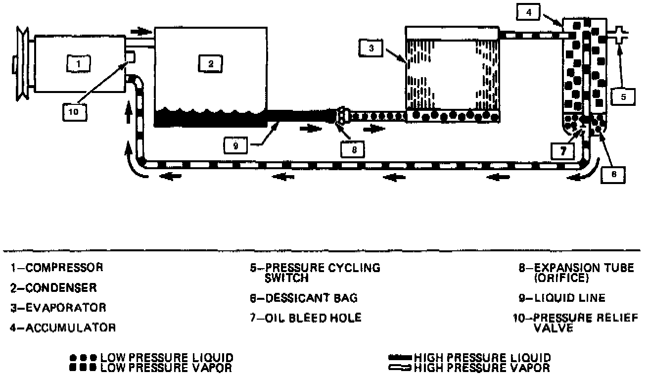 2. Restrictions or kinks in the condenser core, hoses, tubes, etc.