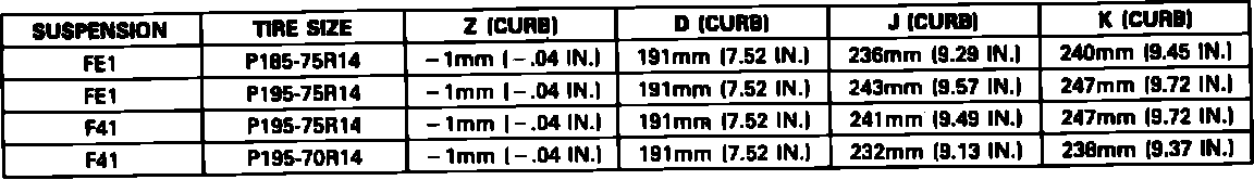 Fig. 3 Ride Height Specifications. 1990 Celebrity: