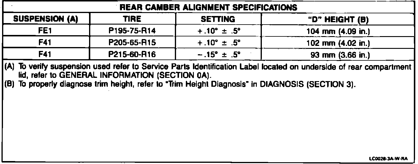 Use these revised rear camber alignment specifications when checking or setting rear wheel alignment instead of those shown in the 1990 Chevrolet Lumina Manual.