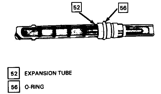 The plastic expansion tube, with its mesh screen and orifice, is located in the evaporator inlet pipe at the liquid line connection.