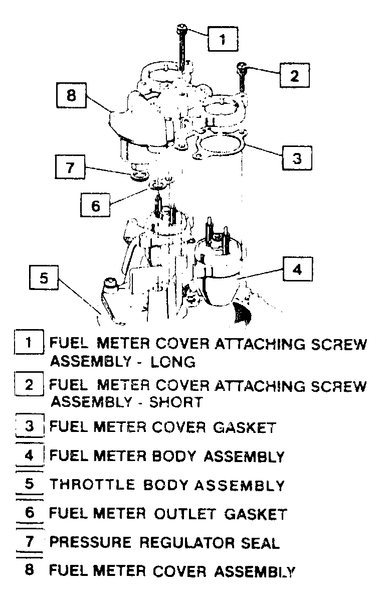 CAUTION: DO NOT remove the four screws securing the pressure regulator to the fuel meter cover. The fuel pressure regulator includes a large spring under heavy compression which, if accidentally released. Disassembly might also result in a fuel leak between the diaphragm and the regulator container.