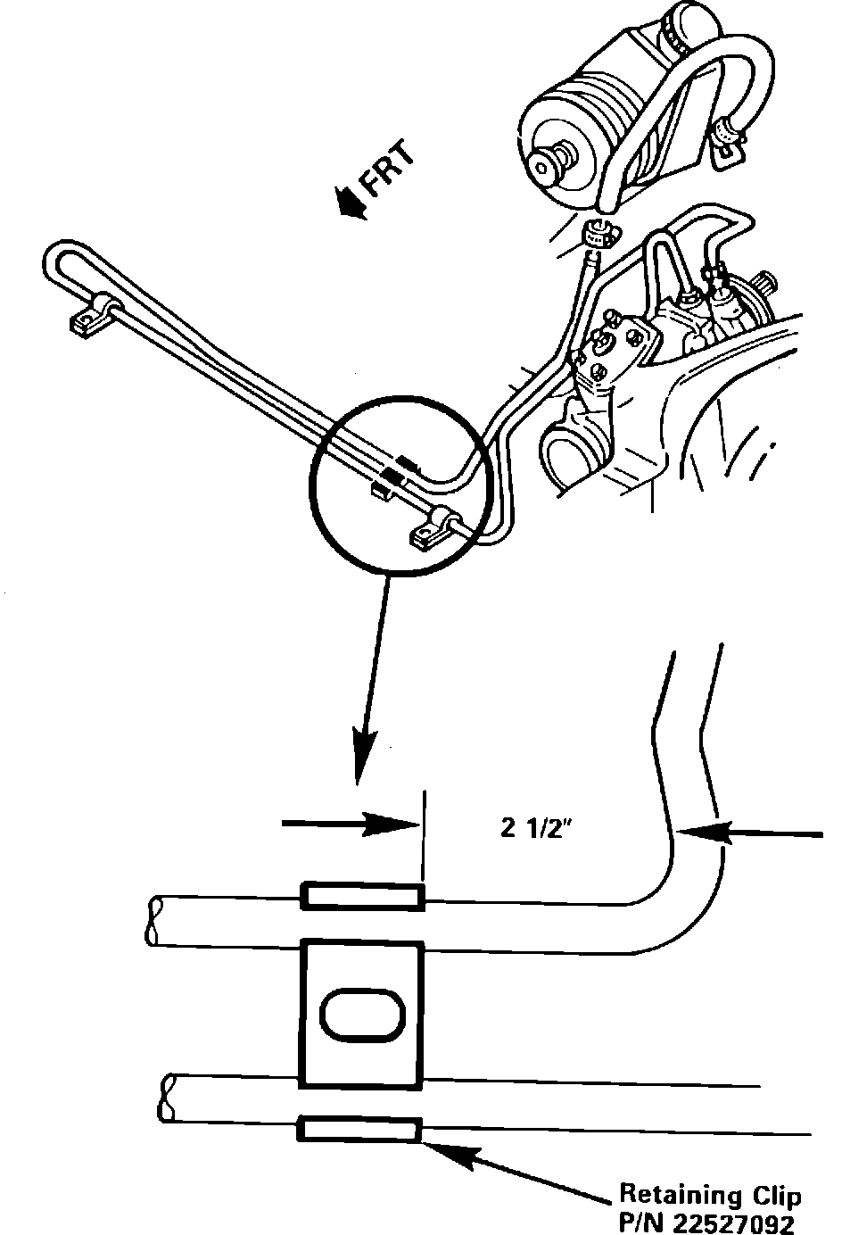 Correction: Install plastic retaining clip, P/N 22527092 on power steering cooler pipes as shown in Illustration.