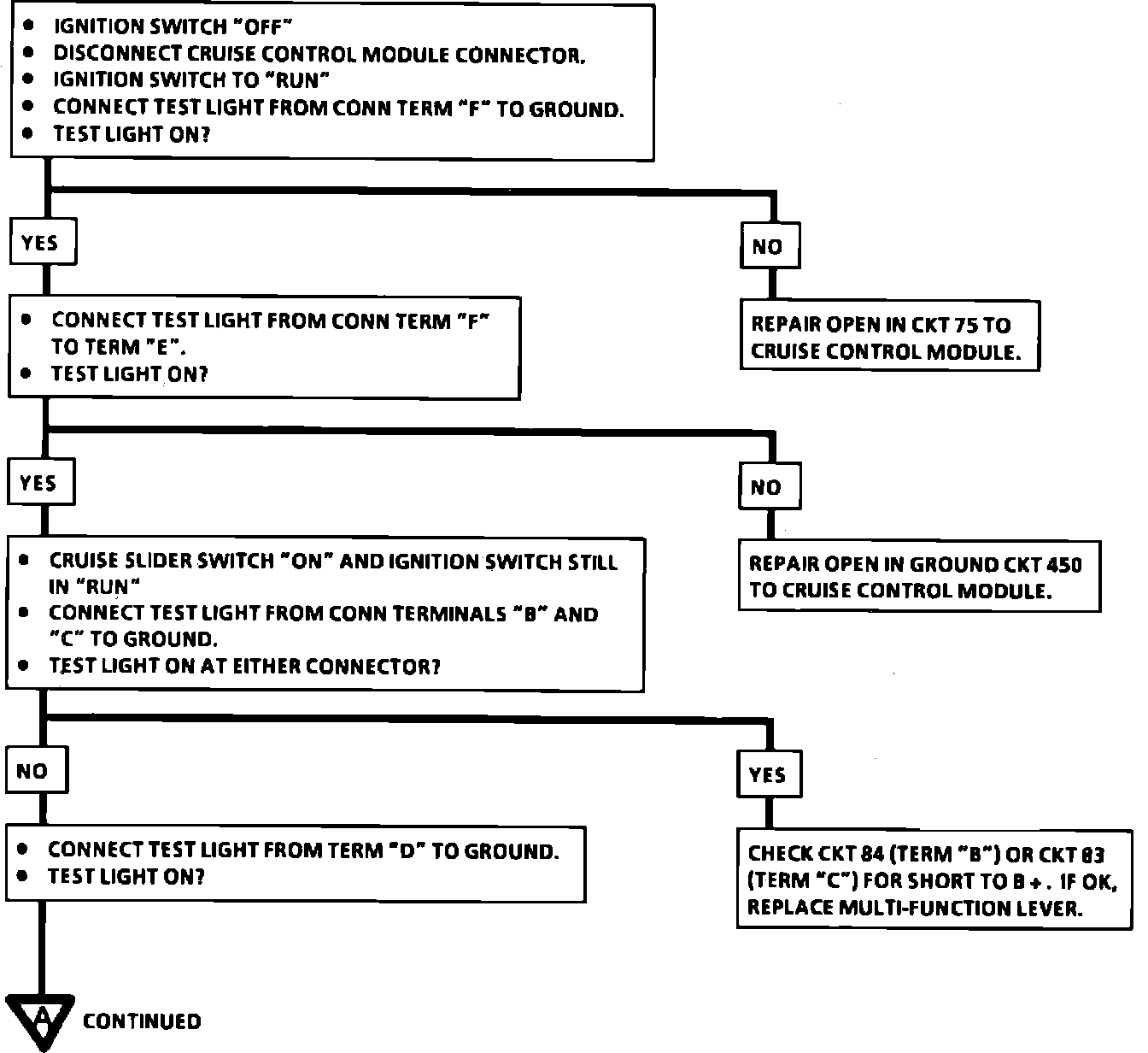 Fig. 24 Cruise Control System Diagnosis Chart 1, Cruise Control Will Not Engage (Part 3 Of 3):