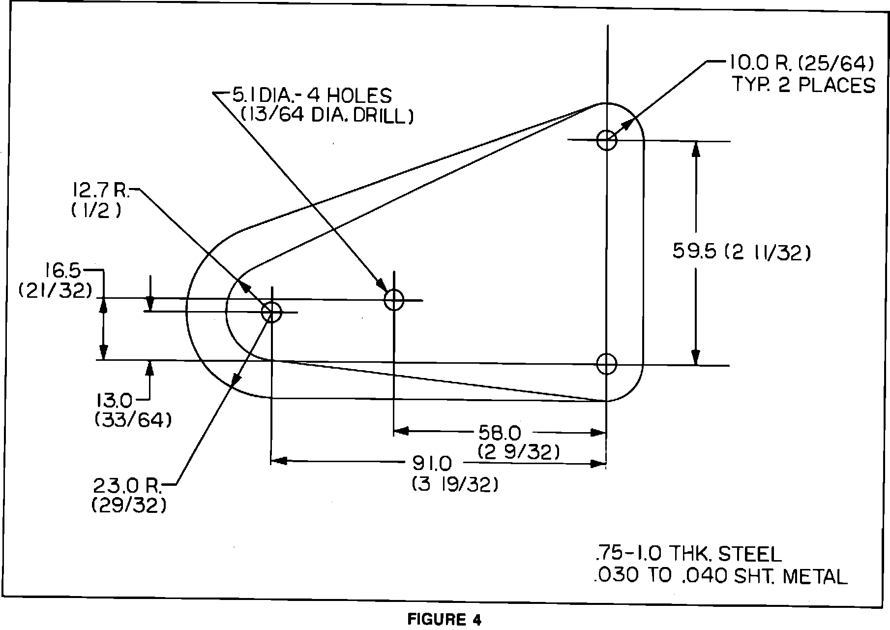 2. Fabricate the mounting plate, using the piece of sheet metal and the template shown in Figure 4. File off the sharp edges of the plate.
