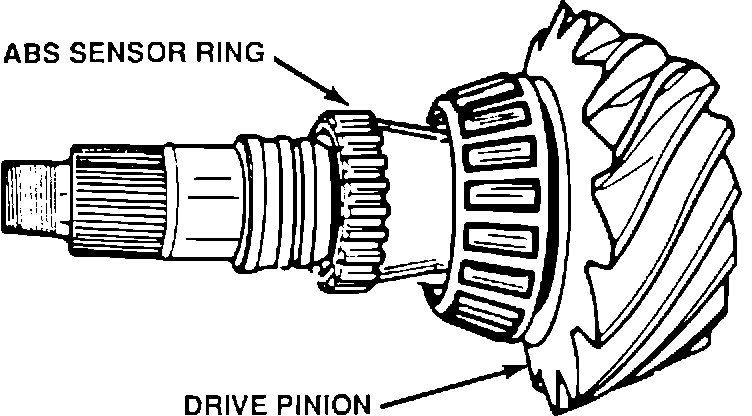 When servicing the rear axle drive pinion, it may be necessary to remove the ABS sensor ring which may effect the original press fit dimensions and tolerances. This could result in false speed signals due to sensor ring slippage. (See Figure 1)