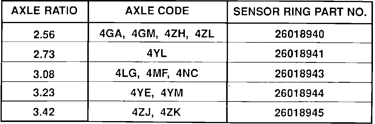 Identify the rear axle in question by locating the axle code stamped on the axle tube (See Figure 2). Using the obtained axle code, cross reference for the appropriate replacement sensor ring part number (See Table 1).