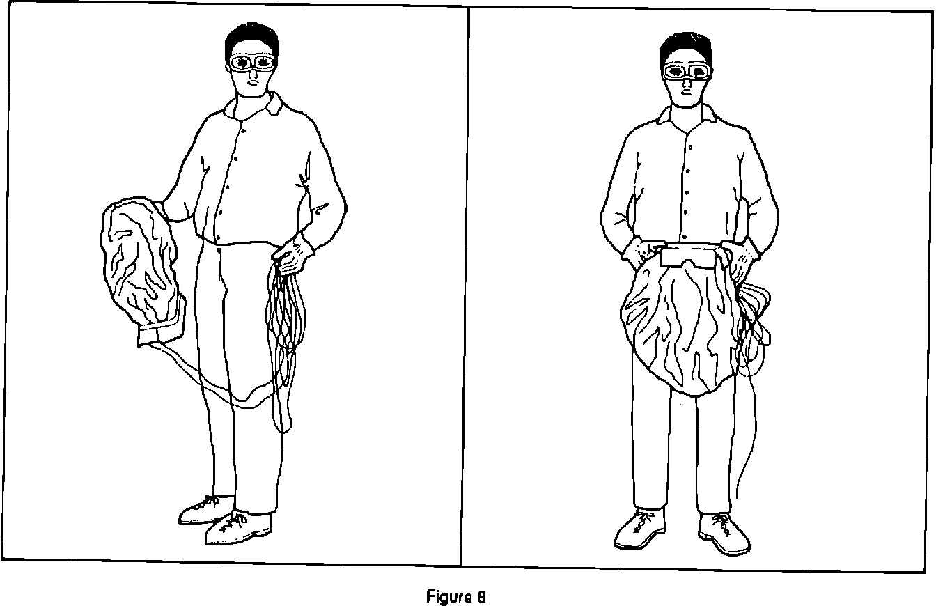 After an inflator module has been deployed, the metal canister and surrounding areas of the inflator module will be very hot. Do not touch the metal areas of the inflator module for about 10 minutes after deployment. If the deployed inflator module must be moved before it is cool, wear gloves and handle by the air bag or vinyl trim. Refer to Figure 8.
