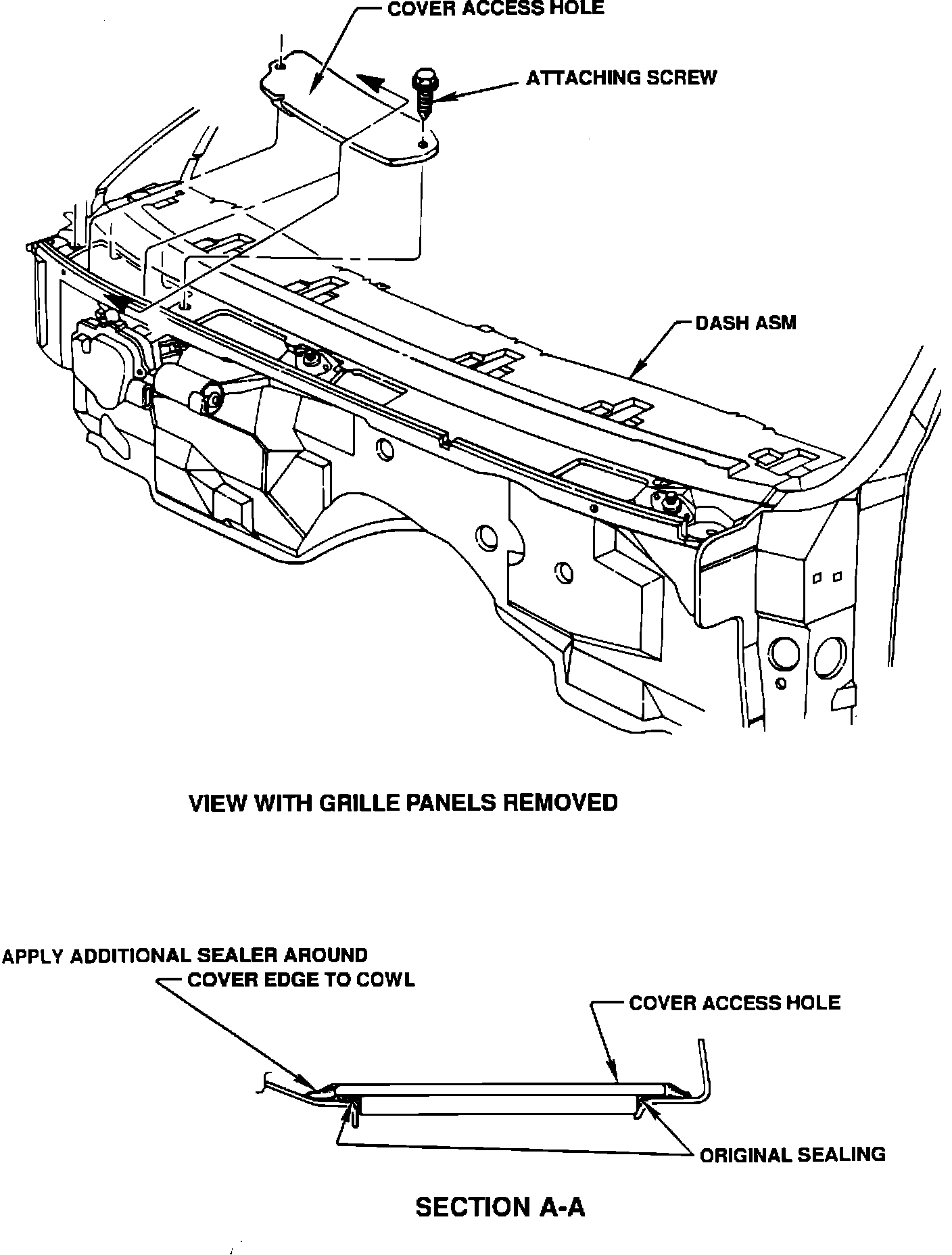 Apply additional sealing around the outside edge of the wiper transmission access hole cover using the following materials and procedure (See Illustration).