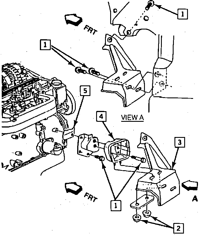 3. Remove engine mount retaining bolts and nuts, Fig. 2, then remove mount.