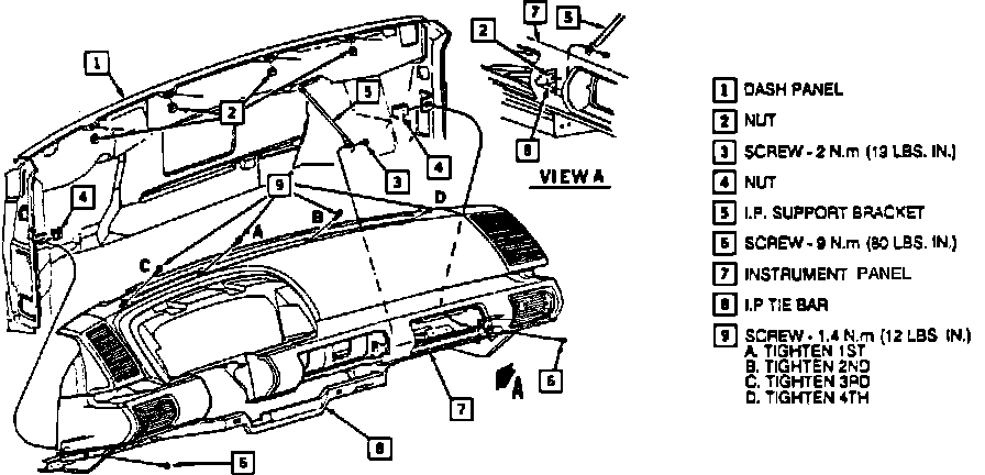 6. Remove two corner instrument panel retaining screws, and one screw to instrument panel brace at left side of instrument panel opening, Fig. 90.