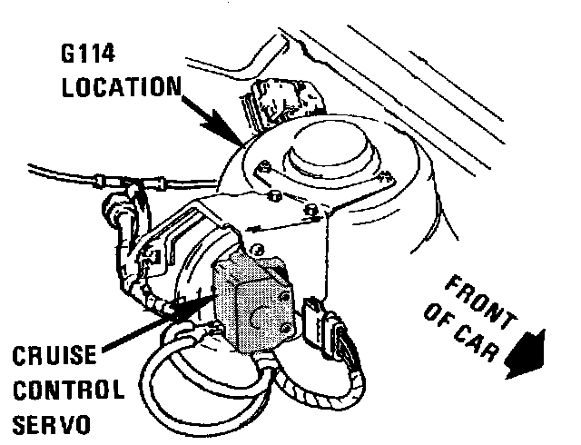LH rear of engine compartment, behind cruise control servo