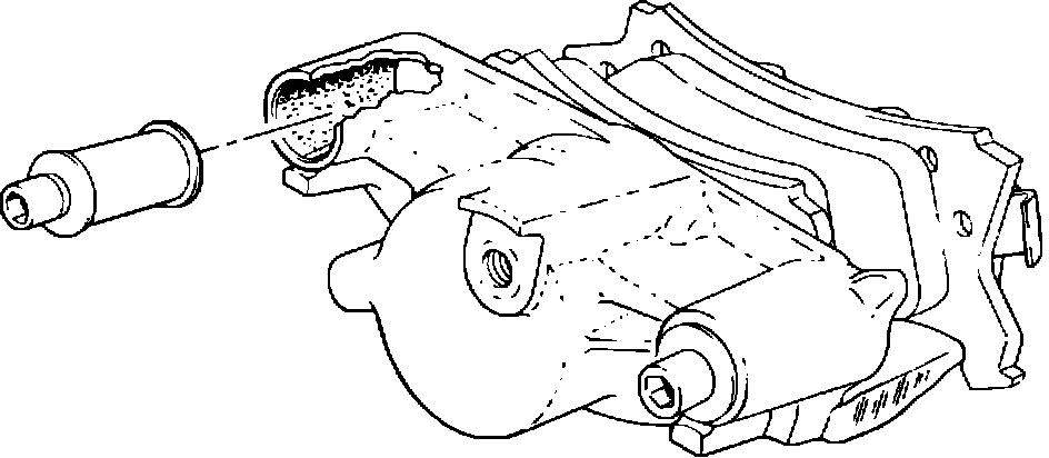 Correction: Inspect the caliper suspension mounting bolts and sleeves for corrosion. Also, inspect the bushings for cuts, nicks and/or excessive wear. If damage to either part is found, replace with new parts.