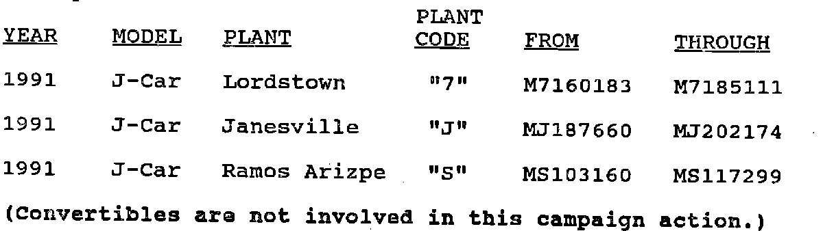 Involved are certain 1991 "J", vehicles built within the VIN breakpoints.