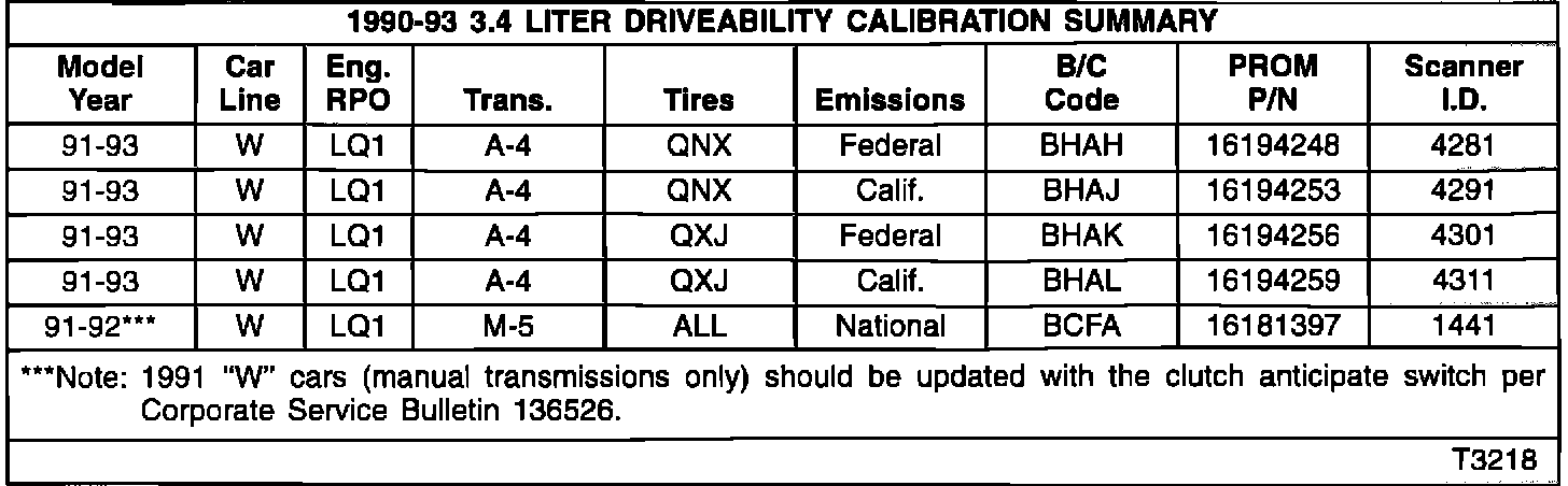 Some owners of 1990-93 J, L and W cars with the 3.1L engine may experience engine stalling, cold start stall and back-up stalls. Some owners of 1991-93 "W" cars with a 3.4L DOHC engine may experience a slight surge on an extended closed throttle decel when equipped with an automatic transmission; and some owners of 1991-92 W-cars with a 3.4L DOHC engine and manual transmission may experience cold/hot stalls, diagnostic trouble code 32 at high altitude, open loop drive-away sags and/or hesitation.