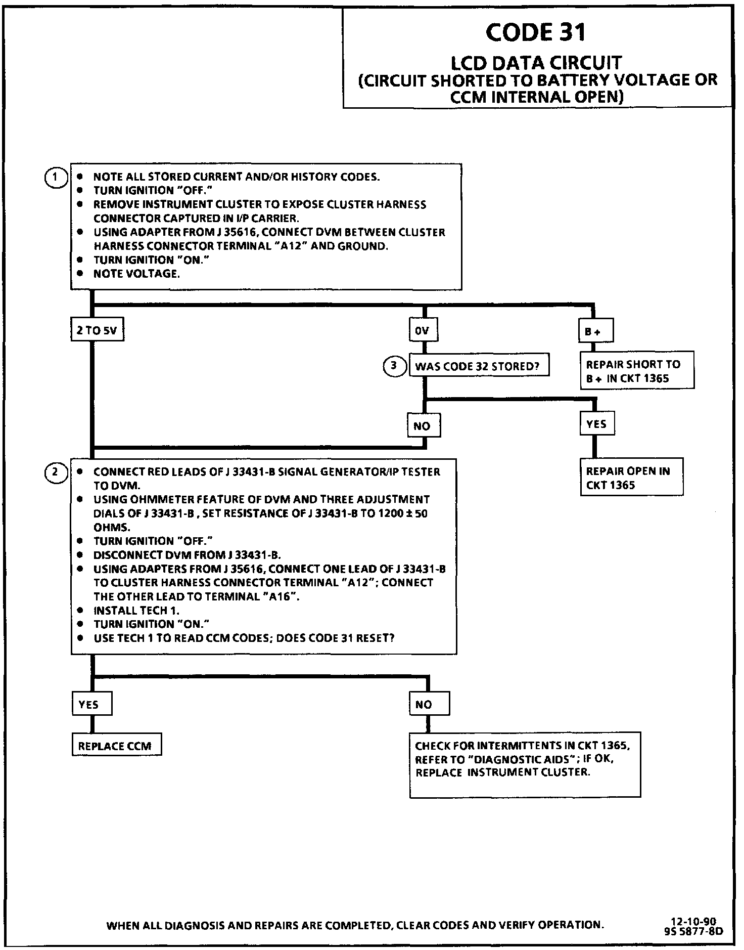 Code 31 will set if CKT 1365 is not in a low state 80 milliseconds after CCM power-up.