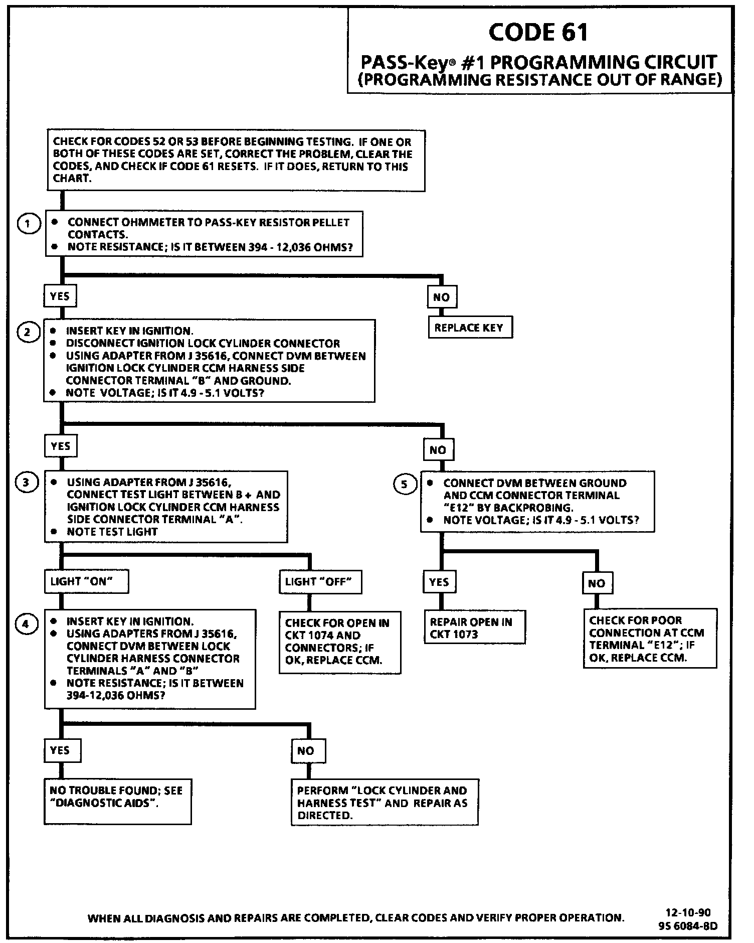 Code 61 will set if the CCM senses that the key # 1 resistance is out of the allowed range of PASS-Key(R) resistance values.