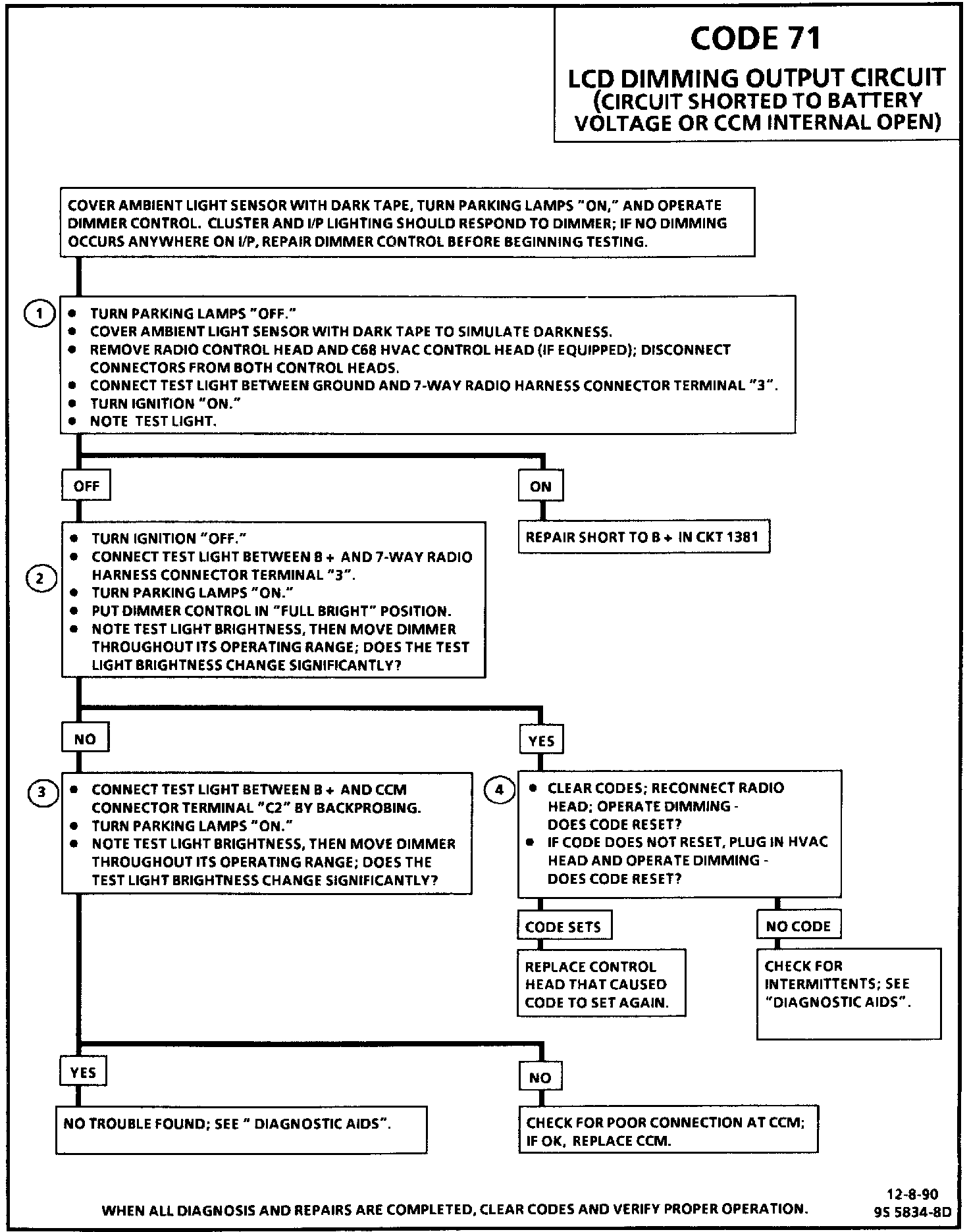 When the CCM is powered up, the LCD Dimming Output Circuit is pulled to a low state by the CCM. If after 60 milliseconds the CCM senses the line is not at a low state, Code 71 will set.