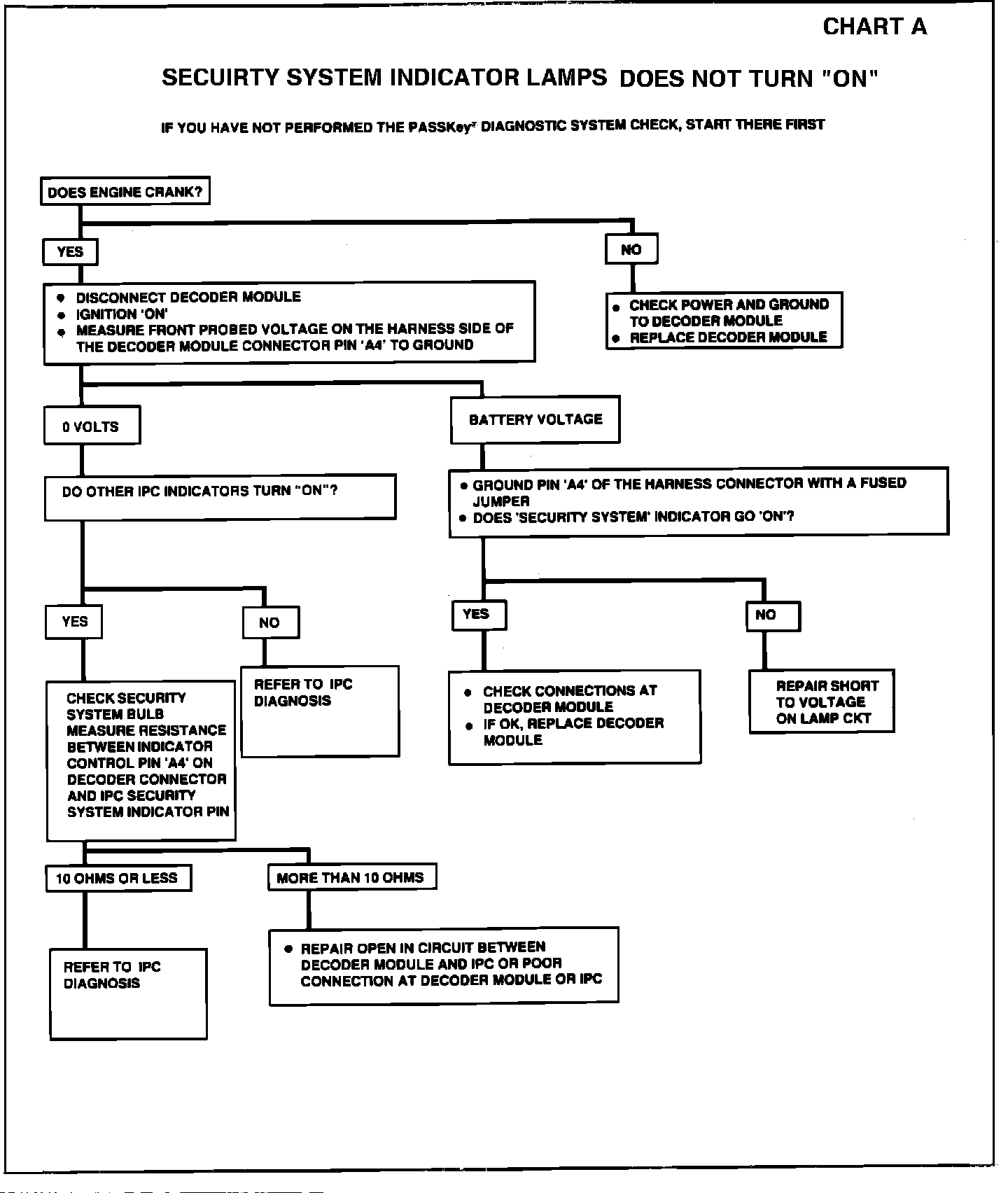 Chart A: Security Indicator Lamp Does Not Turn on