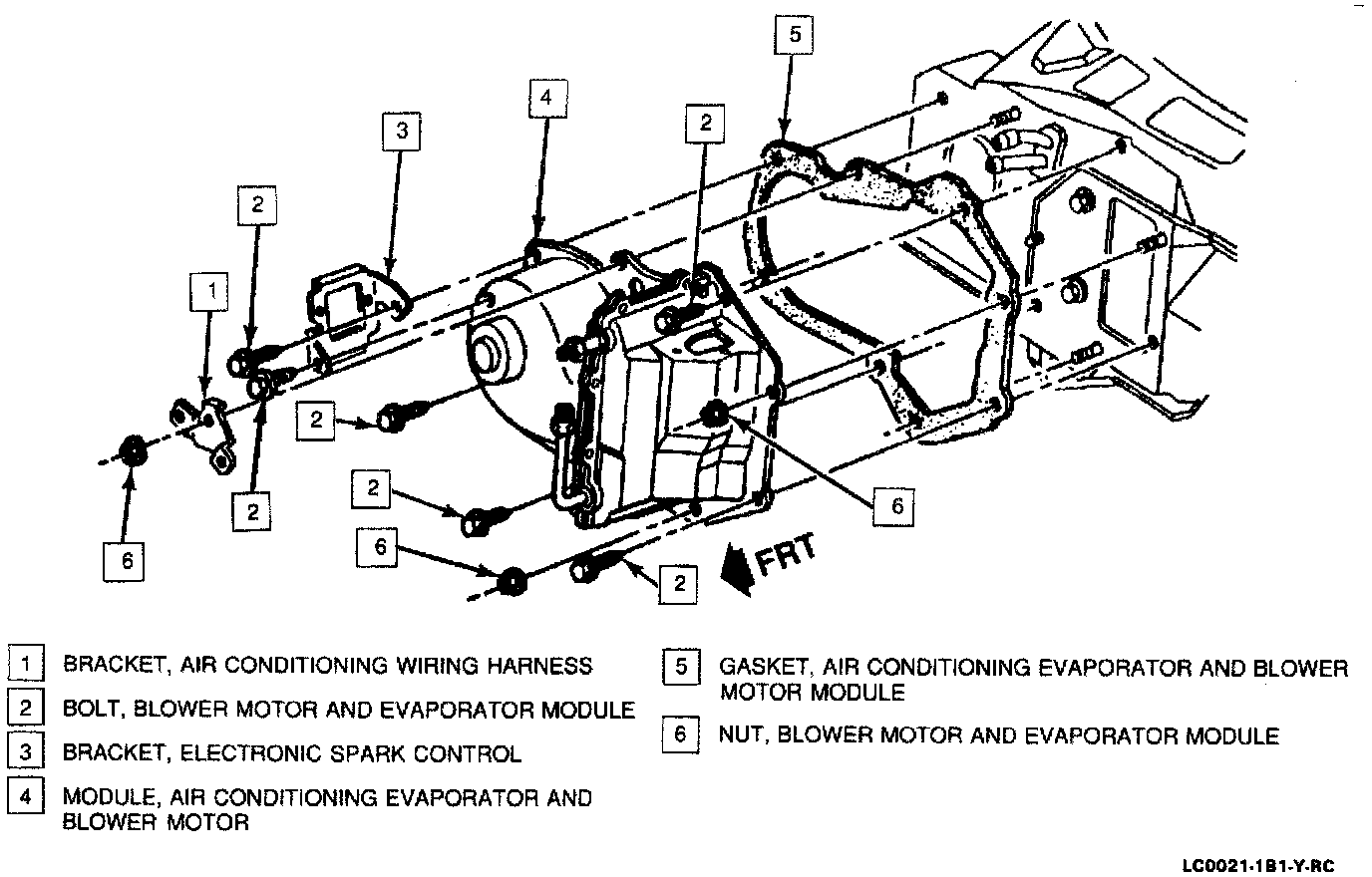 1. Blower motor and fan to evaporator module.
