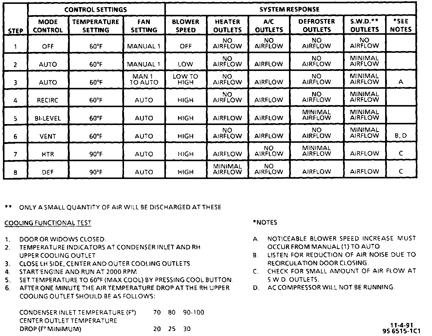 ^ one of the six operating modes (Automatic, Bi-Level, Vent, Heater, Defogger/Defroster, and Defogger)