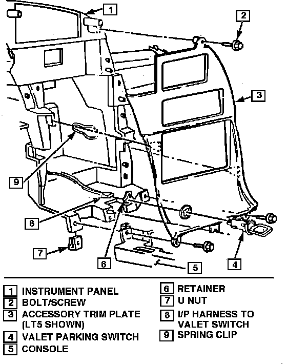 10. Remove accessory trim plate to instrument panel retaining screws.