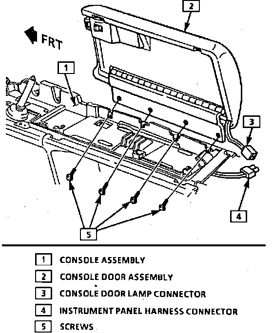 15. Remove console door to console retaining screws, then disconnect console door lamp connector, Fig. 22.