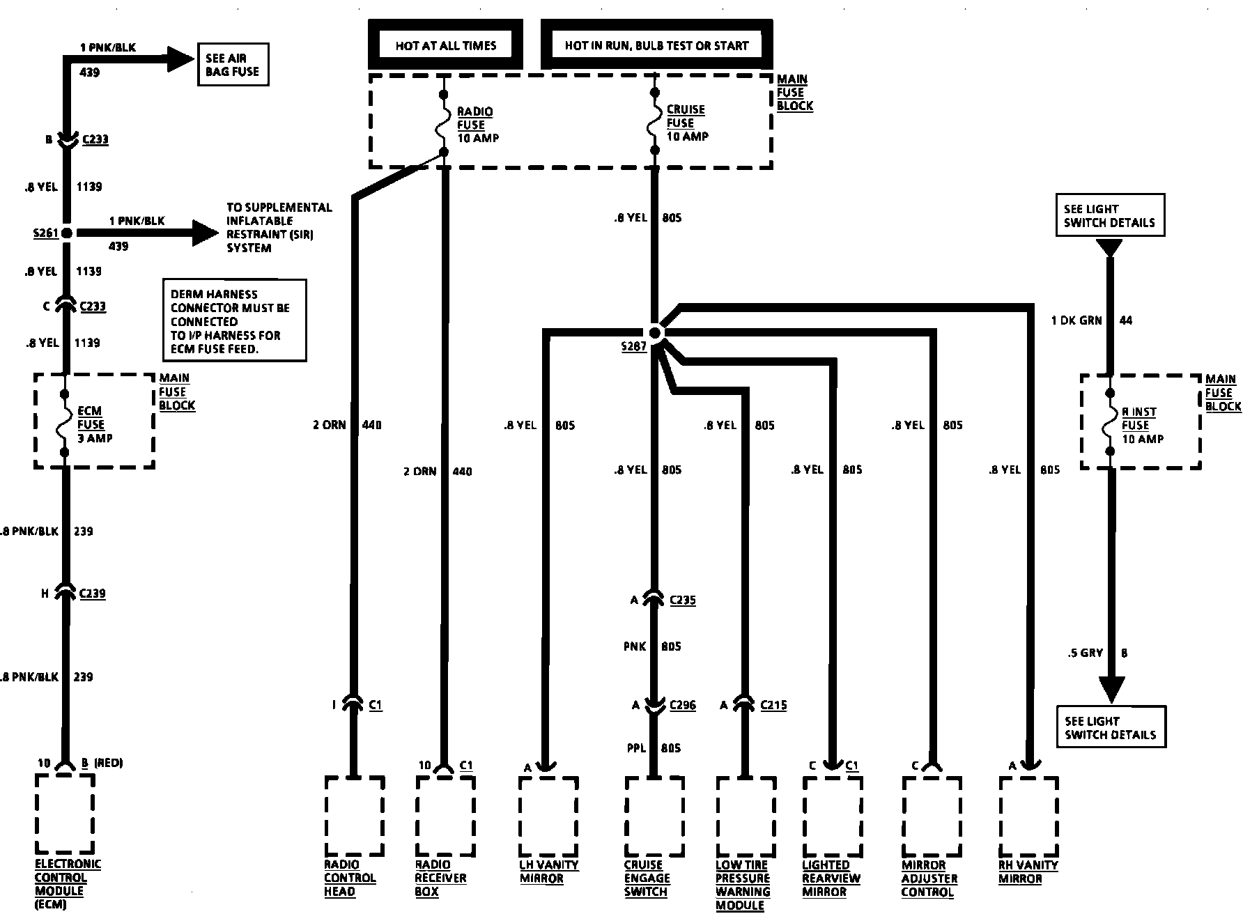ECM Fuse, Radio Fuse, Cruise Fuse And R INST Fuse: