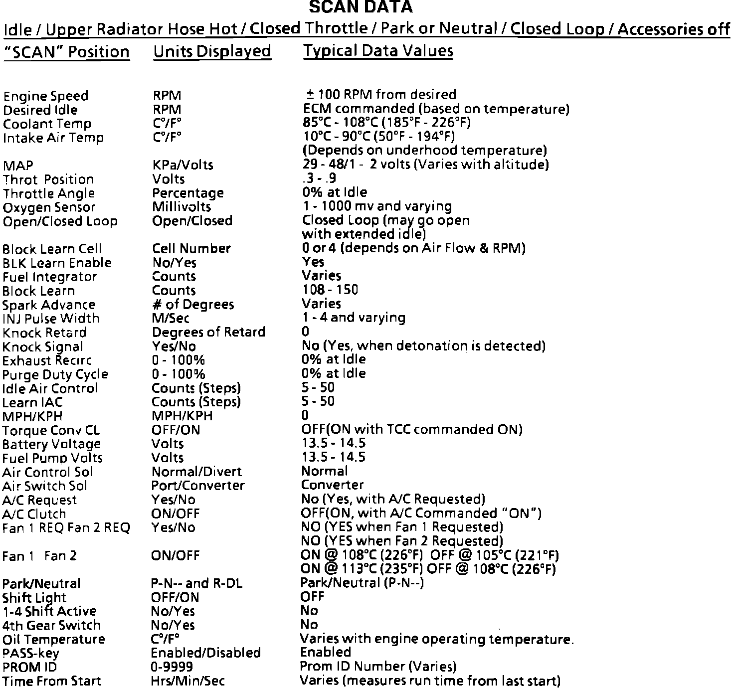 Typical Scan Data Values: