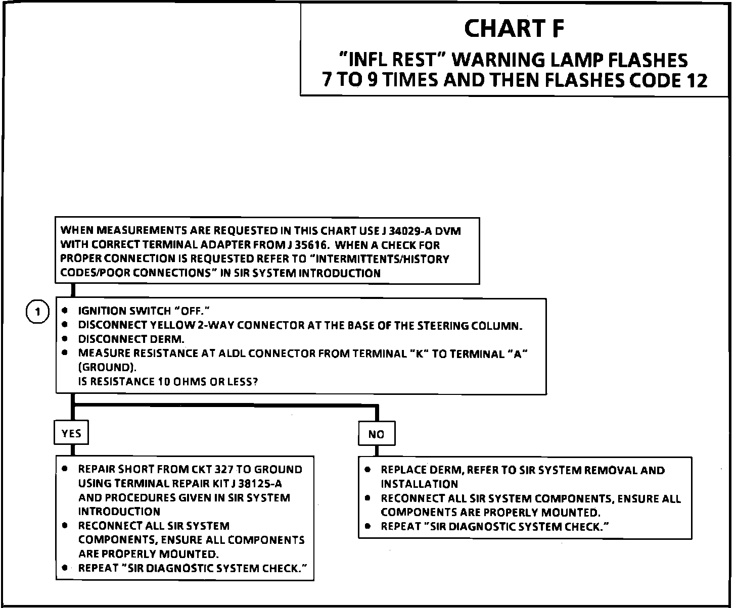 Fig. 88 Chart F, ``INFL REST'' Lamp Flashes 7-9 Times, Then Flashes Code 12 (Part 1 Of 2).: