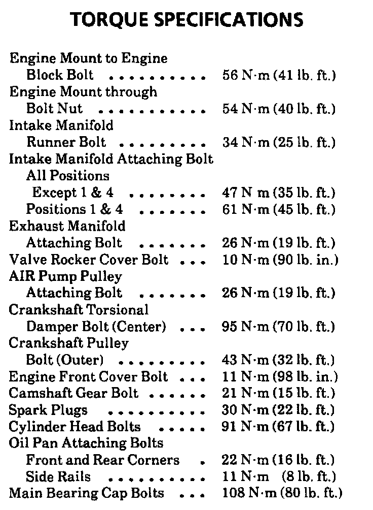 Torque Specifications: