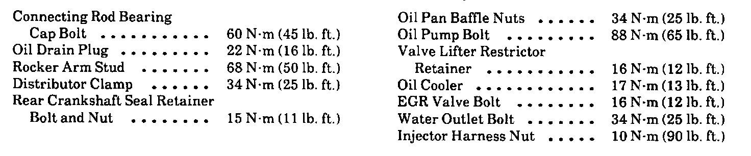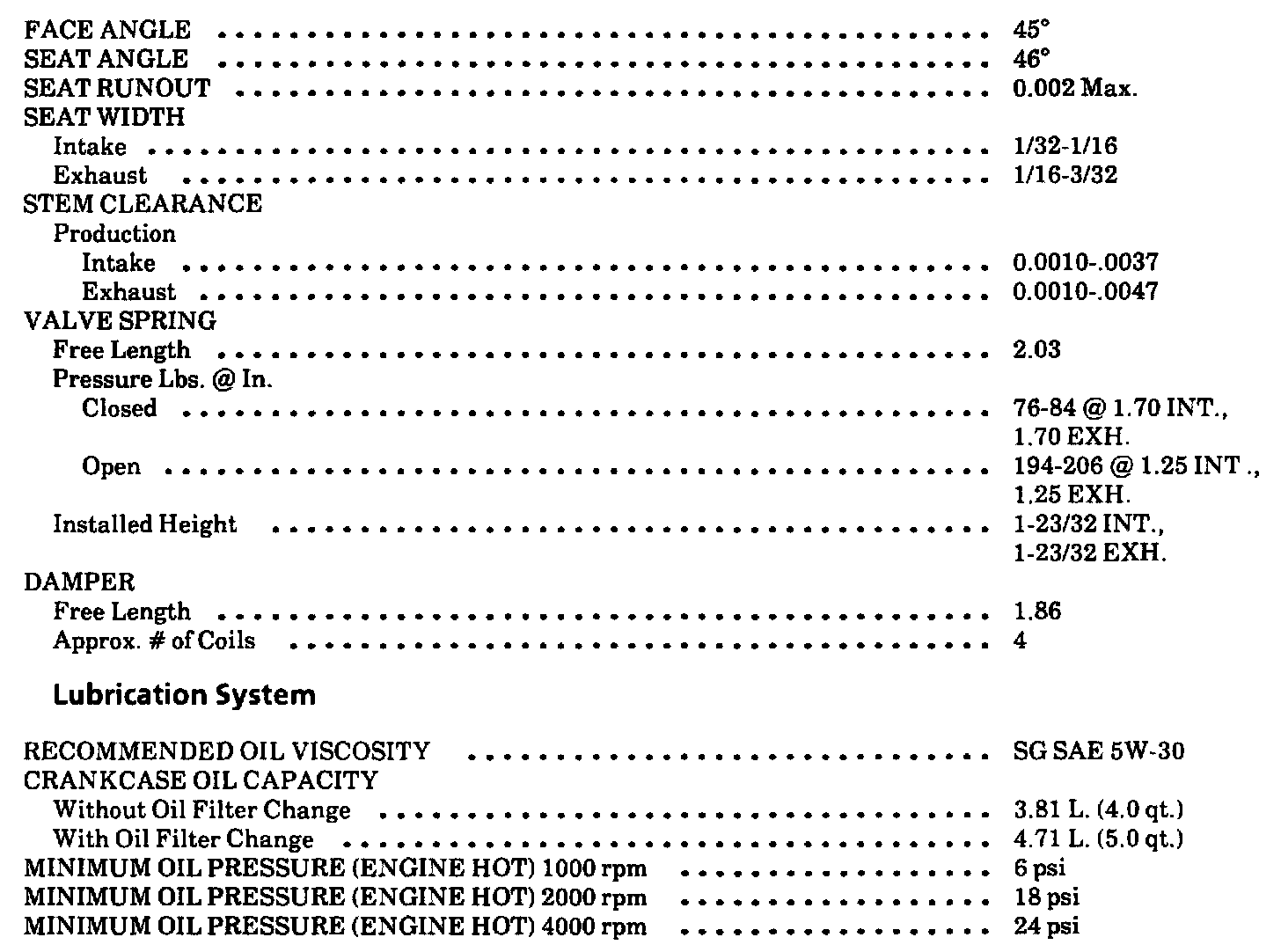 Continued Engine Specifications: