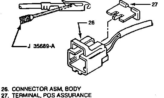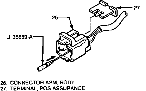 a. Disconnect POS assurance terminal, and, using tool J-35689-A or equivalent, disconnect wires from body connector assembly, Fig. 109.