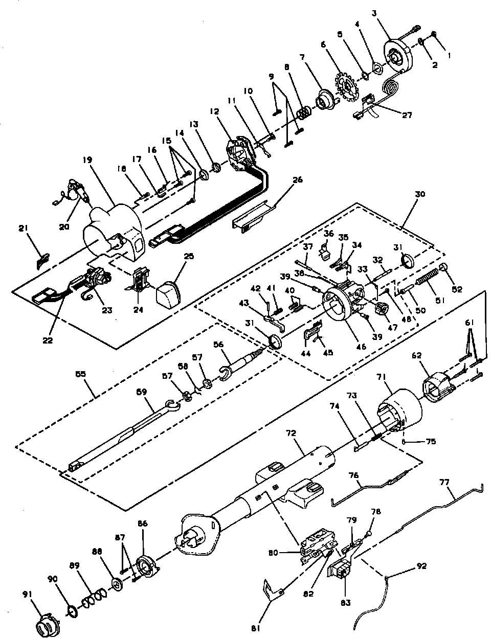 7. Remove column housing assembly by pulling back on tilt lever and pulling housing down and away from column.