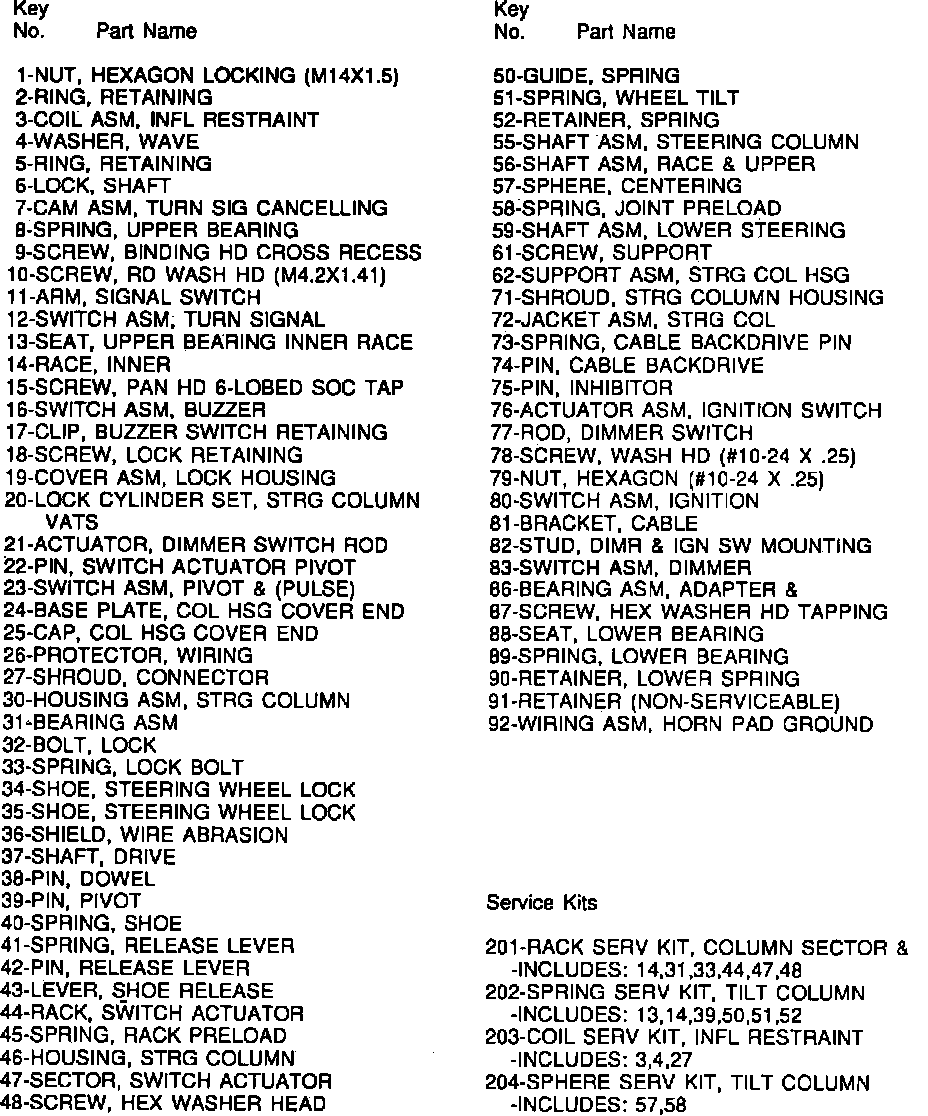 Fig. 104 Exploded View Of Supplemental Inflatable Restraint (SIR) Steering Column (Part 1 Of 2). 1990-91 Corvette: