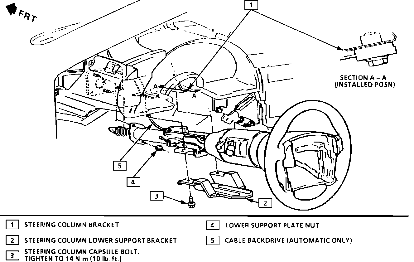 3. Install cable backdrive on vehicles with automatic transmission, then loosely attach column nuts to support plate studs.