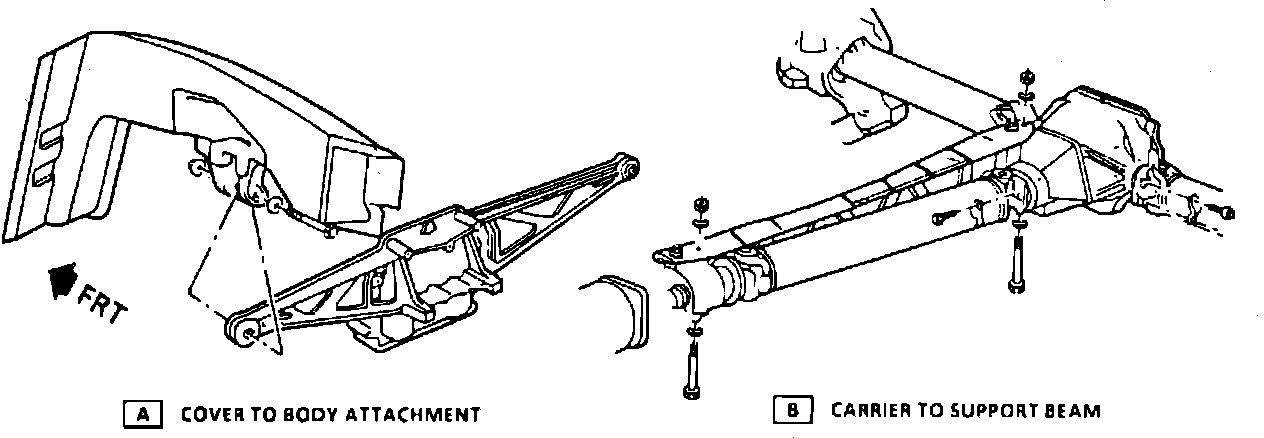 10. Reverse procedure to install. On 1990-92 models, when installing driveline support, apply sealer at locations shown in Fig. 2. Check rear suspension alignment.