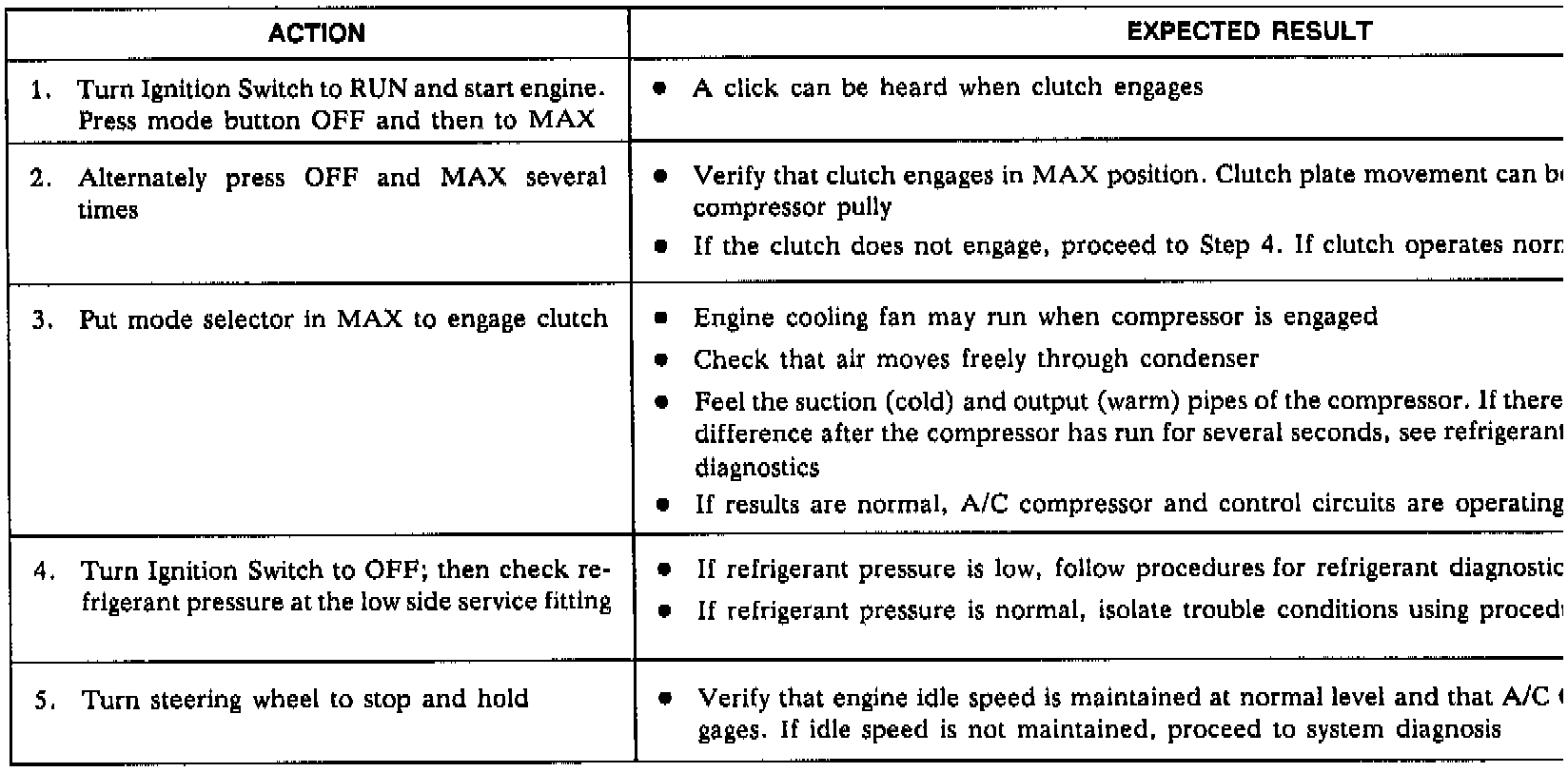 ^ Use the System Check Table a guide to normal A/C compressor operation.