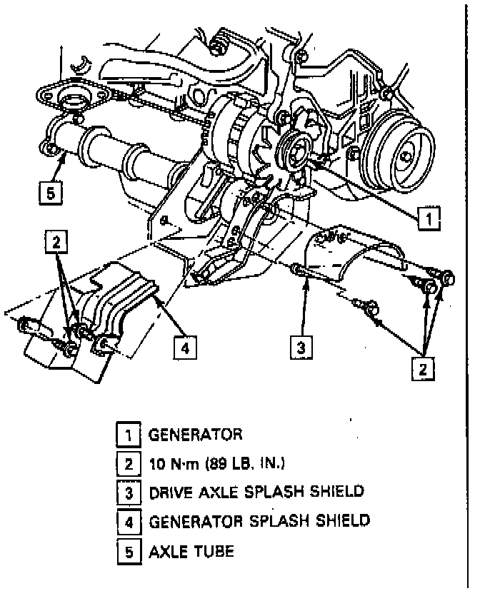 1. Generator and loosely install all mounting bolts. Tighten Generator lower mounting bolt to 83 Nm (61 ft lb).