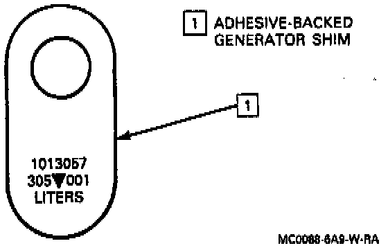^ If replacement generator does not fit, remove adhesive-backed shim from rear generator bracket (see figure).