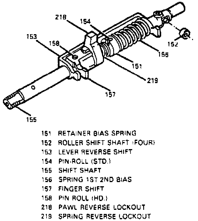 14. Install roll pins (154 and 158). Ensure pins are even with shift lever and retainer surfaces.