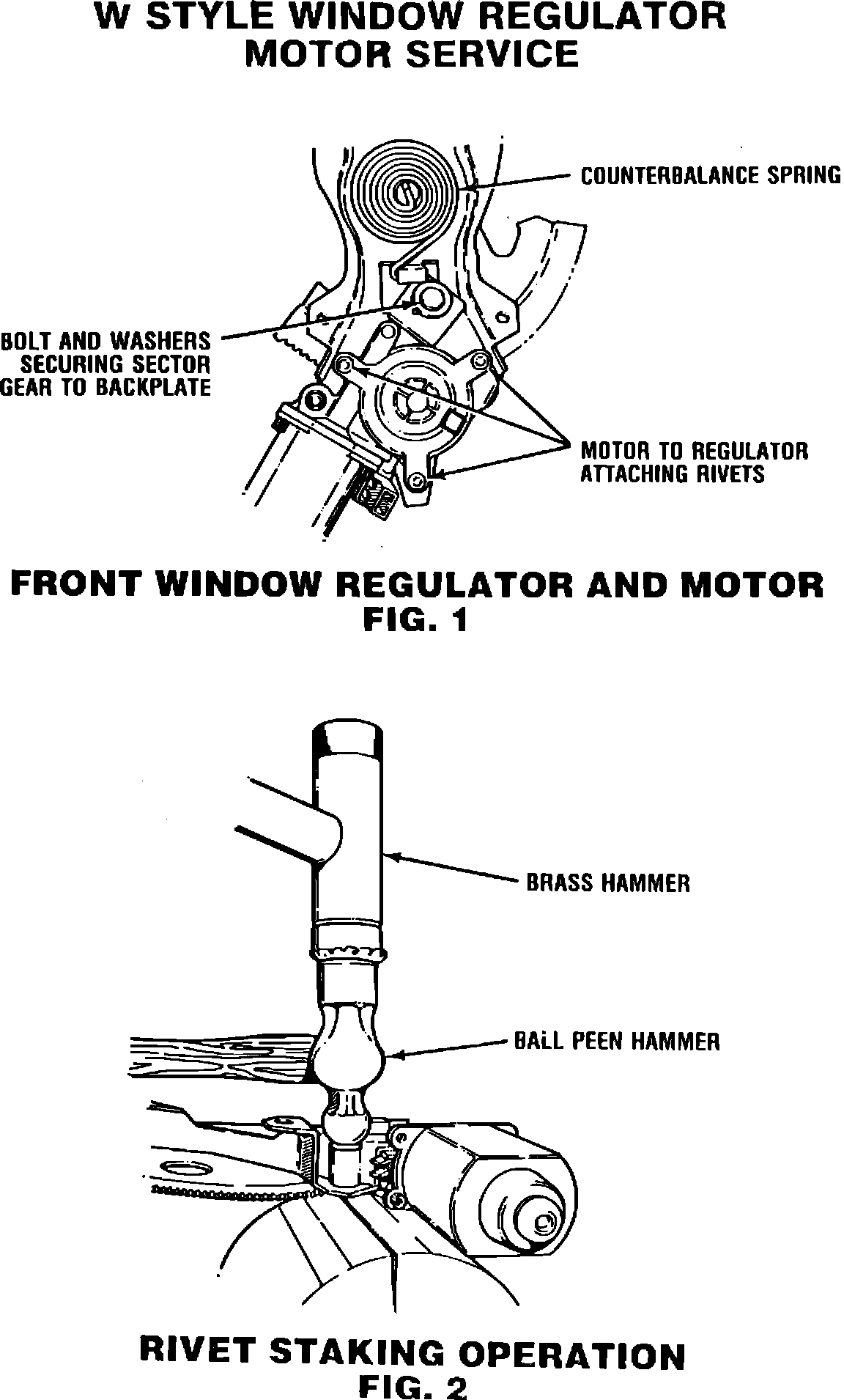 5. Position new motor to the regulator backplate and with the aid of a helper, install motor with 1 rivet (bottom location, Figure 1) by collapsing or crushing end of rivet (P/N 9441949) with a ball peen type hammer as shown in Figure 2.
