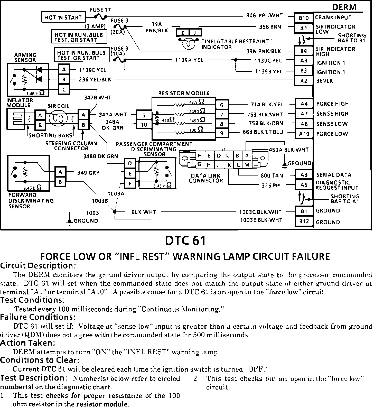 Fig. 100 Code 61, Force Low Or INFL REST Warning Lamp Circuit Failure (Part 1 of 2):