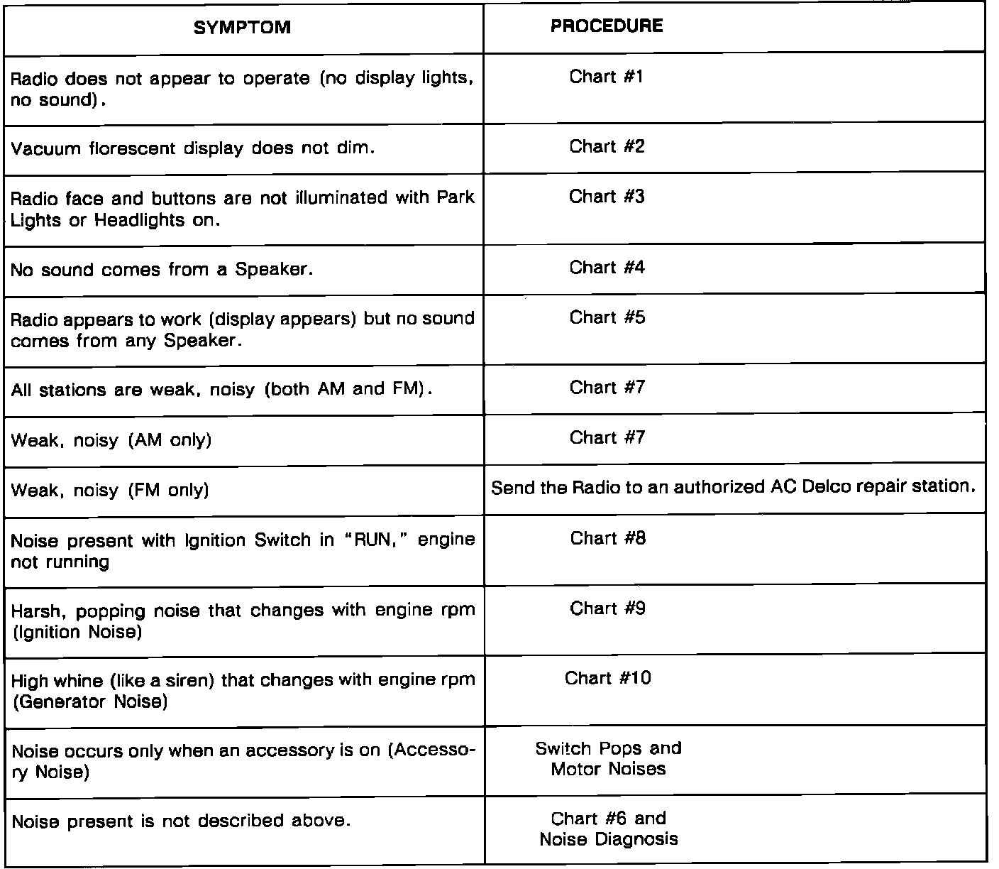 Radio Symptom Diagnosis Chart: