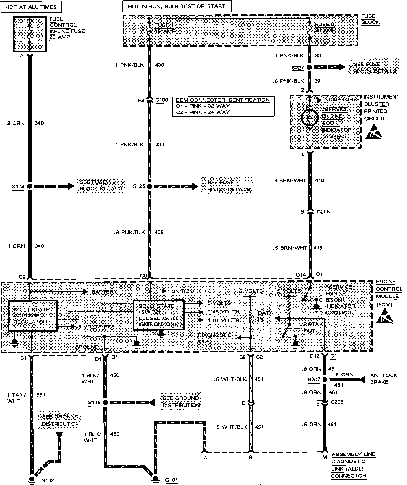 MFI: Power, Grounds And "SERVICE ENGINE SOON" Indicator: