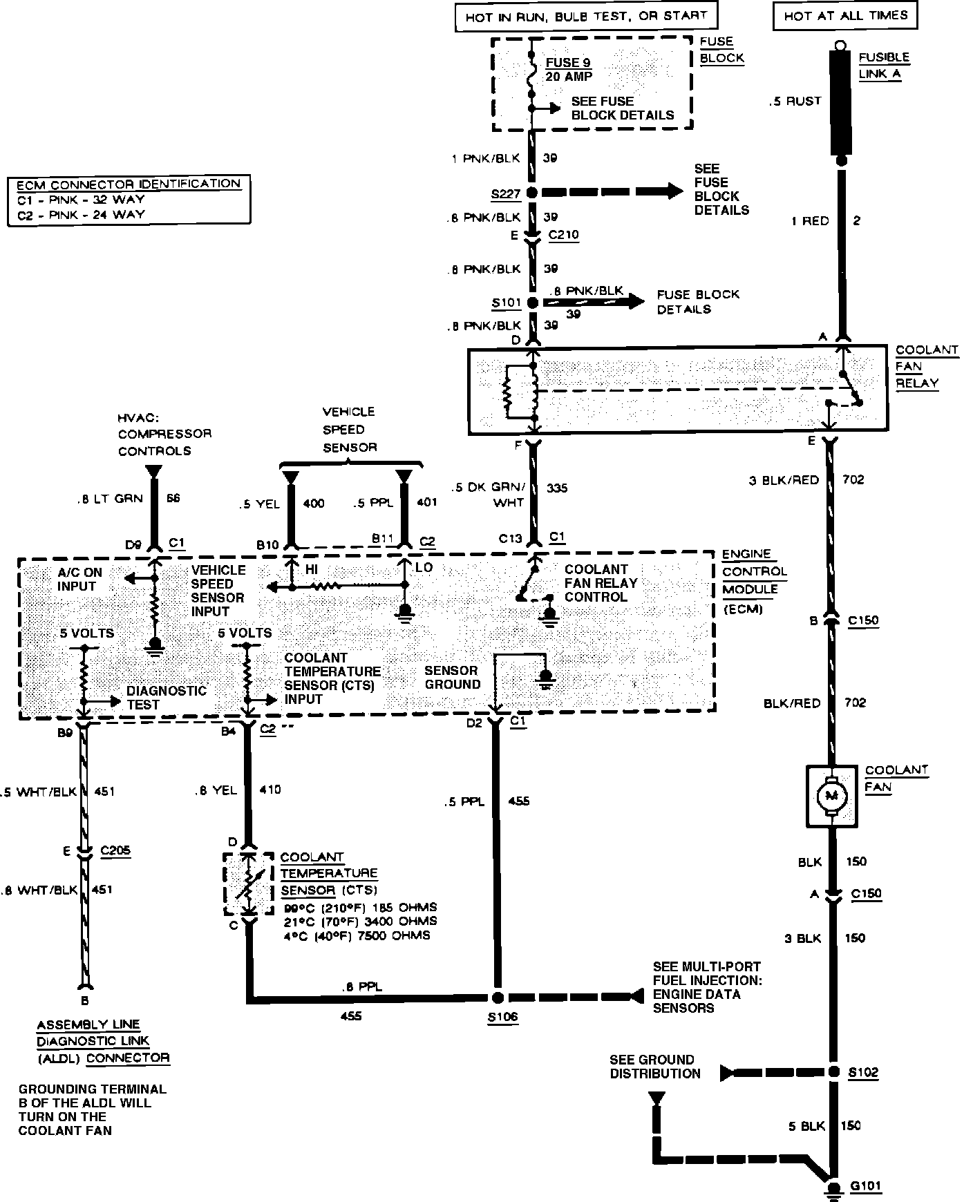 Coolant Fan Wiring Circuit. w/2.2L/4-135 Engine: