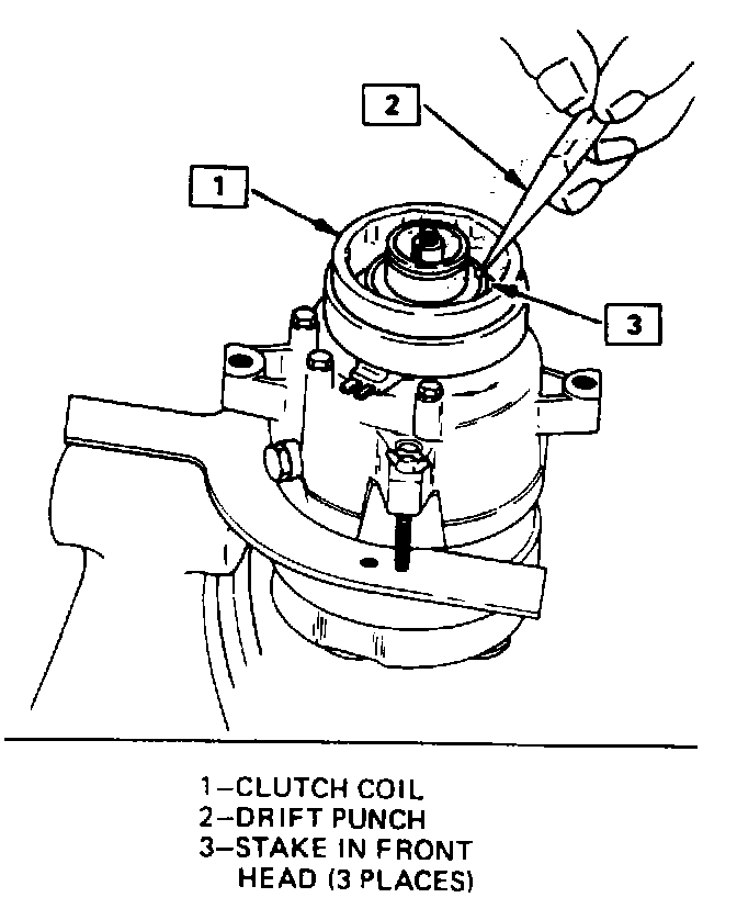 Remove or Disconnect1. Perform Steps 1 through 4 of "Clutch Rotor and/or Bearings" removal procedure. Mark clutch coil terminal location on compressor front head.