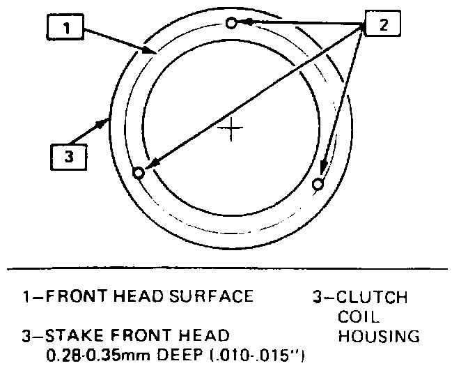 5. When coil is fully seated on the front head, use a 1/8" diameter drift punch and stake the front head at three (3) places 120° apart. to ensure clutch coil remaining in position.