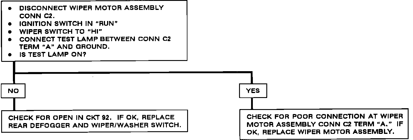 Chart #3 - Wipers Run At Low Speed Only Or Wipers Cycle In And Out Of "PARK" In "HI" (High Speed Inoperative):