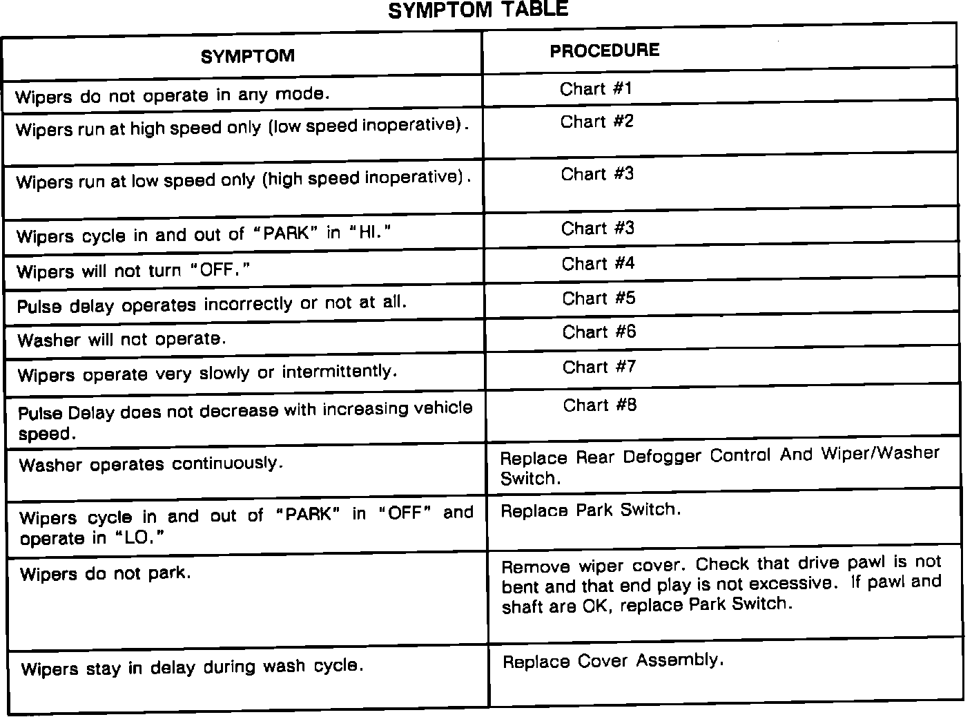 Pulse Wipers Symptom Chart: